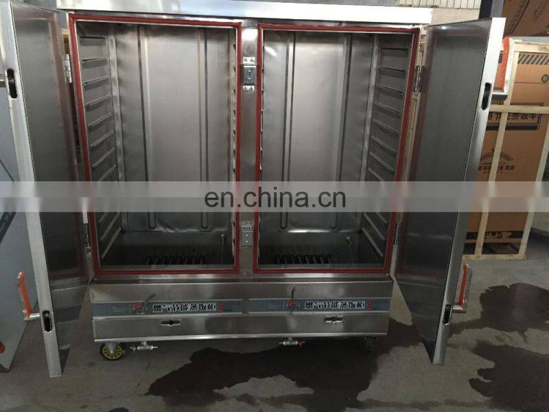 This rice steamer is suitable for steam rice, bun, cakes, meat, fish, sea food, stewed food, etc. This steam rice machine use angle steel as body frame, the inside and outside weld with high quality stainless steel plate, the structure is compact and firm, insulation layer choose high quality materials.
