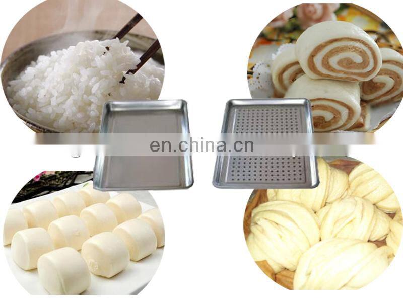 This rice steamer is suitable for steam rice, bun, cakes, meat, fish, sea food, stewed food, etc. This steam rice machine use angle steel as body frame, the inside and outside weld with high quality stainless steel plate, the structure is compact and firm, insulation layer choose high quality materials.