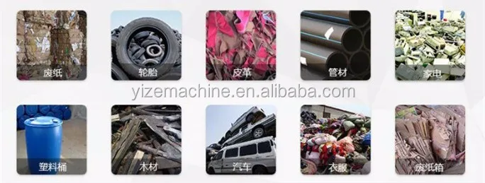 Application Fields: waste paper, tire, leather, pipe, home appliances, barrel, wood, car, cloth, metal and so on