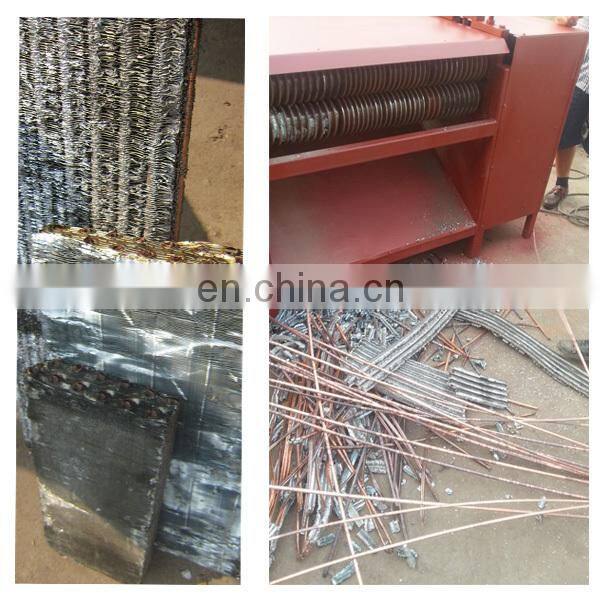 It is easily for operate, high quality and high performance. It is use for separating the outside aluminum foil and the inside copper pipe of wasted air conditioning radiator. Each set of this kind of machine just can separate two different specification radiators. Because the interval width of the copper pipe are different in the radiator, so we need you can offer us the width of the copper pipe of the radiator. In China, the width of the radiator copper pipe is 21MM, 25MM, and 19MM. Besides, the thickness is one layer and two layer. If the thickness is 3 to 4 layer, then the Band Saw Machine is necessary.