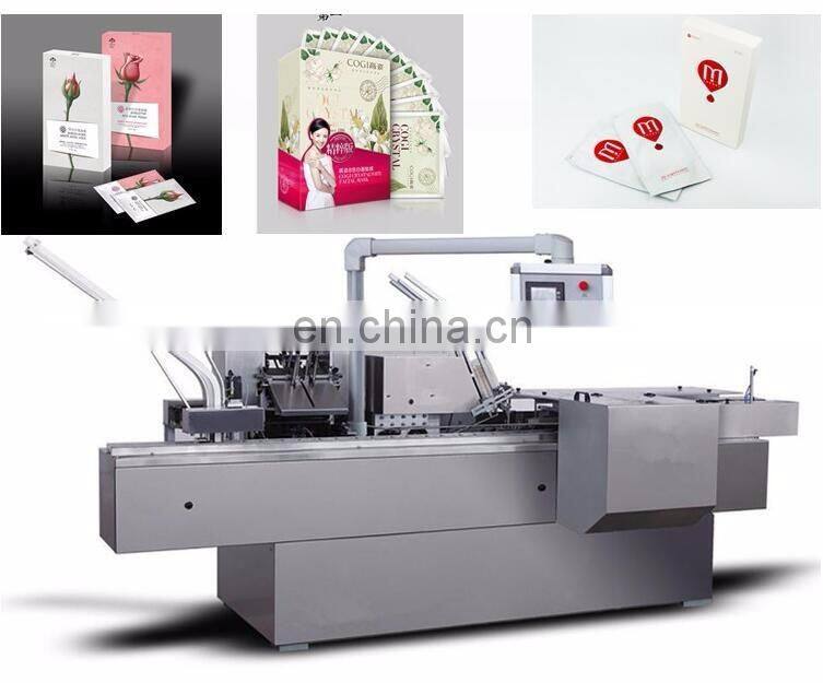 This product is suitable for the packing of soaps, daily chemicals, cosmetics, facial masks and similar articles. It can automatically complete the folding and folding of the instruction manual, the opening of the carton, the packing box of articles, the printing batch number and the sealing box at both ends of the carton.