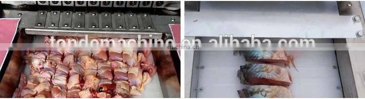 This machine is suitable for cutting various frozen meat , fresh meat, ribs, frozen beef/pork meat, frozen chicken, duck, frozen fish, and various poultry meat(with bone and boneless)