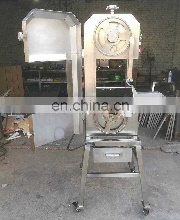 2. Suitable for cutting various skeletons, frozen meat, frozen fish and wood files. This machine is suitable for frozen meat cutting and normal temperature bone and meat, but not for normal temperature boneless meat.