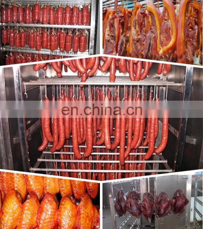 The fish smoker automatic can be customized for steam and electric heating. Suitable for sausage, ham, sausage, Bacon, bacon, smoked fish, Roasted Duck and Roast Chicken, poultry, aquatic products such as smoked products, baking drying, forming a smoky color. Good color, taste better. To ensure the quality, technical quality, convenient operation. After smoking, the color of the food is good, there is a smell of smoke, people feel fragrant but not greasy, but also to achieve environmental protection, completely replace the traditional method of smoking.