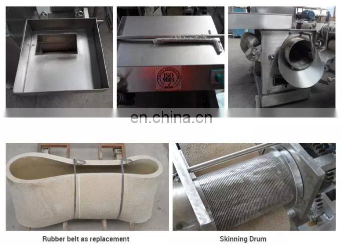 3. This fish bone removing machine is specially used to separate the fish skin, the bones and the tendon, which can improve the utilization rate of raw materials and also save the labor cost.