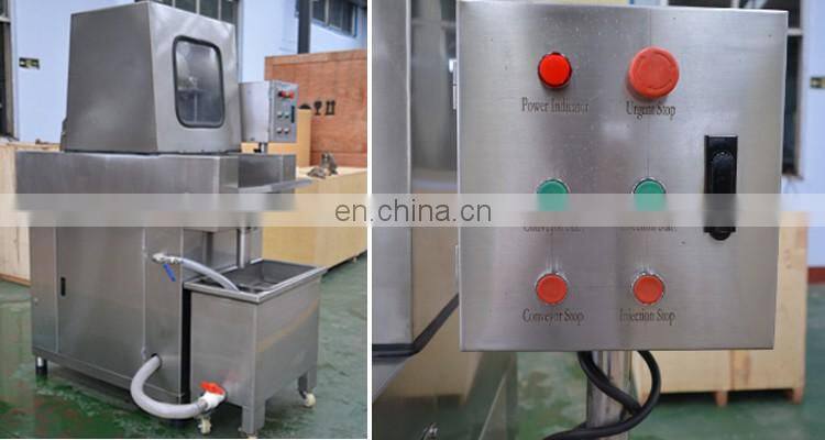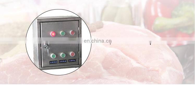 Poultry saline water injecting machine is the salt water, starch, soybean protein, and auxiliary materials into the meat of pickled adequately, relying on advanced technology, using mechanical devices to marinate preparation by needle injection into the product, make uniform distribution in automatic saline injection machine to achieve rapid curing, add seasonings, keep meat nutrition, strengthen the purpose of the palate. According to the different process requirements, adjust the step speed, step distance, pressure plate clearance and injection pressure, the pickling liquid evenly and continuously injected into the meat, to achieve the most ideal injection effect.