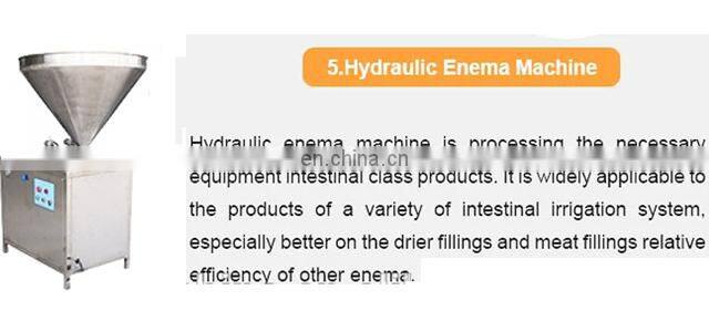 Sausage processing: Frozen meat-Frozen meat cutting machine-Frozen meat grinder machine-Meat bowl cutter machine-Vacuum double axis meat mixing machine-Vacuum sausage stuffing (filling) machine-Enema machine-meat smoking oven.