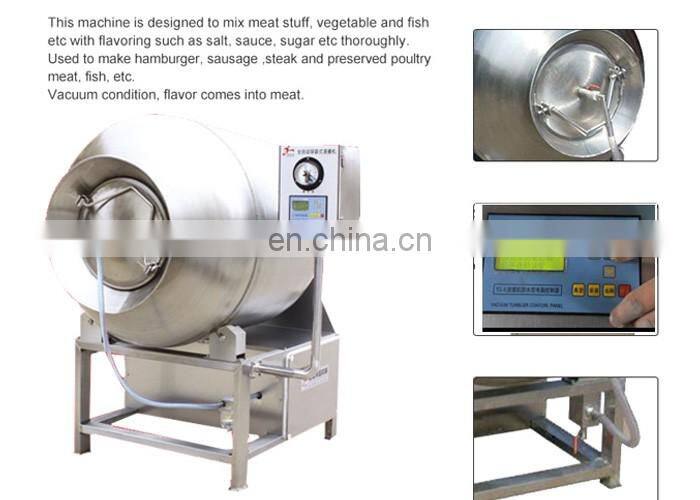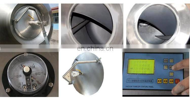 Vacuum meat tumbling machine is a newer method of marinating or brining meat.Suitable for frozen food, sea food, prepared food, Ready-to-cook product, Meat soaked food etc. It reduces the marinating time for meat and changes meat texture and then gains weight about 20% up.