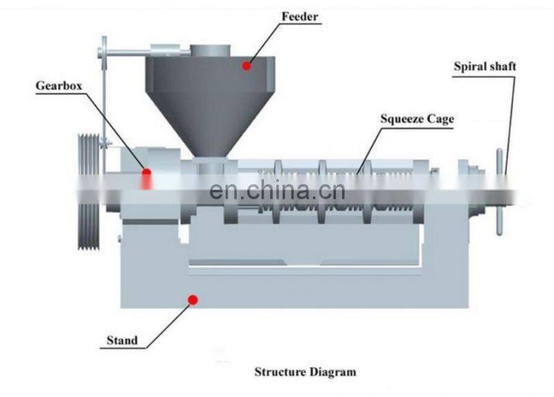 The screw oil press are advanced pressing, characterized by their high oil output rate with good quality, simple design, easy to use and continuous operation. Screw oil miller can be used to press various raw material, such as peanut, beans, rape and cotton seeds, sunflower, coconut, grass seed etc. Gearbox uses helical gears, making smooth transmission, and reduce operating noise.