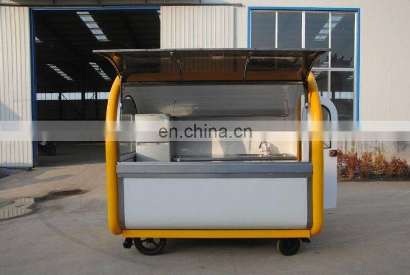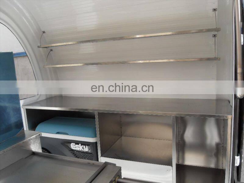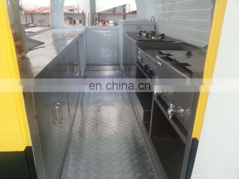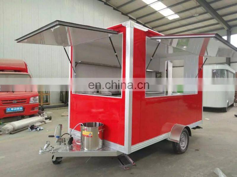This towable food trailer is designed with a single hitch frame, has one guide pulley, so it can be easily towed or pushed by any motor vehicles.