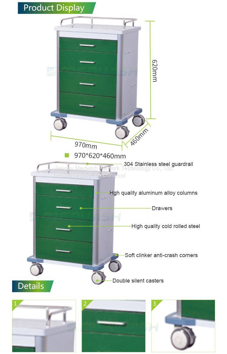 AG-GS003 Luxury Hospital Mobile Cold Rolled Steel Emergency Medical Trolley