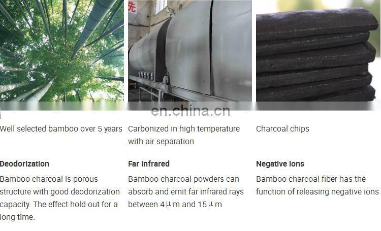 The bamboo charcoal piece was grinding into superfine powder, and the polyester melt mixed or mixed with viscose spinning. By grinding powder, it increases the specific surface area of bamboo charcoal and enhances the adsorption capacity.