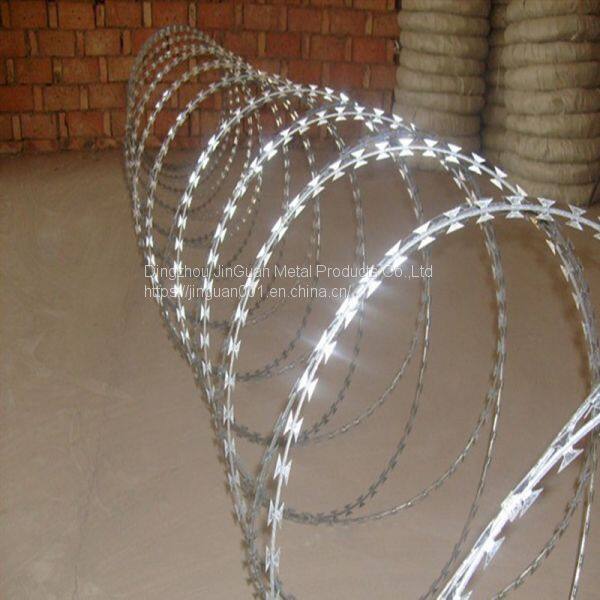 1. Material applied for razor type barbed wire and barbed tape wire:Galvanized razor wire or stainless steel razor coils.