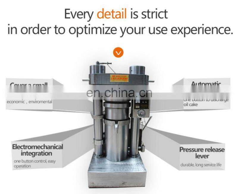 Our 6YY series automatic hydraulic oil press machine has many advantages: intelligent system,pure physical pressing,multiple use of one machine. This oil press is the most advanced equipment which can replace of the manual operation of the sesame oil.