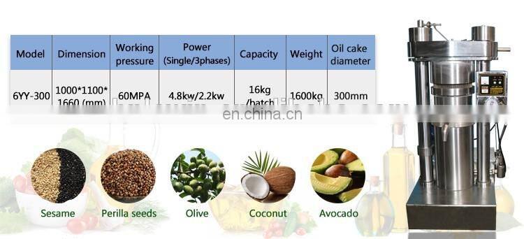 1.The pressure of our machine is 60Mpa, higher than other machine(the normal is 45Mpa to 55Mpa), provide higher oil yield.