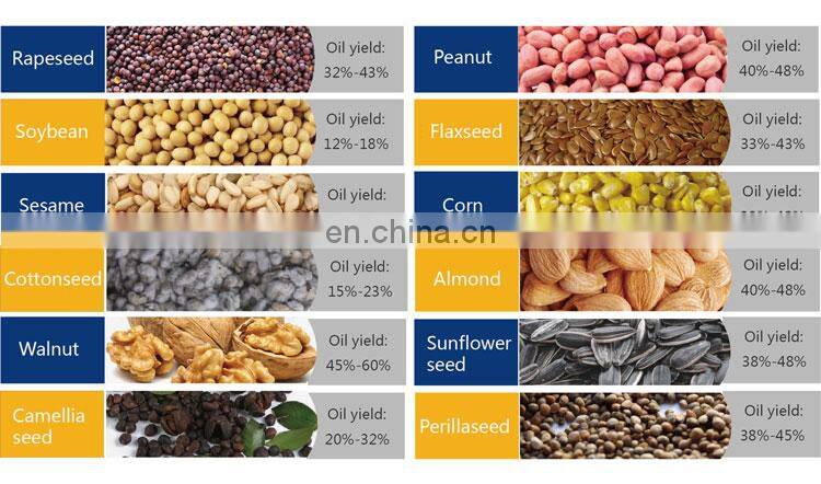 1) wide use - a multi-purpose machine, can squeeze peanuts, flax, sesame, rapeseed, oil sunflower, cottonseed, soybean and other more than 30 kinds of oil crops multi-stage pressing.
