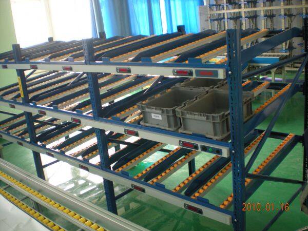 Fluent shelves, also known as self-sliding shelves, use the self-weight to realize the flow of goods and first-in-first-out, and can realize one replenishment, multiple picking, high storage efficiency; used for sorting operations in the distribution center and process conversion on both sides of the production assembly line. Such places can be equipped with electronic tags to realize the information management of goods.