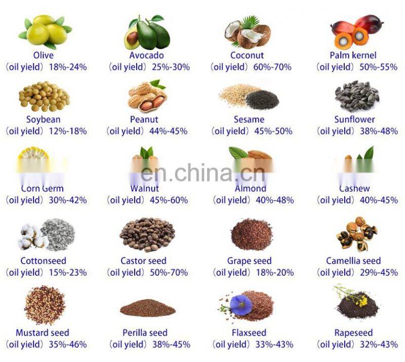 4) It is suitable for crushing sesame, peanut, rapeseed, sunflower, walnut, soybean and cottonseed oil.