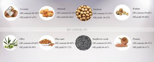 4.Wide using range—this oil extractor machine can press various kinds of oil crops, such as peanut, sesame, soybean, flax, rapeseed, oil sunflower, cottonseed.