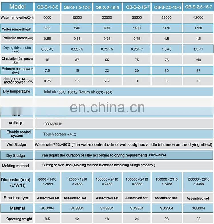 3.It occupies a small area. Equipment for treating capacity of 100ton/day wet sludge occupies less than 500m2.