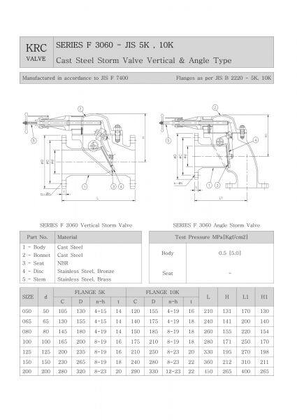 JIS Marine Valve Cast Steel Storm Valve F3060R 5K 10K