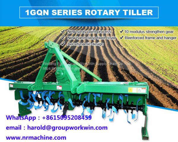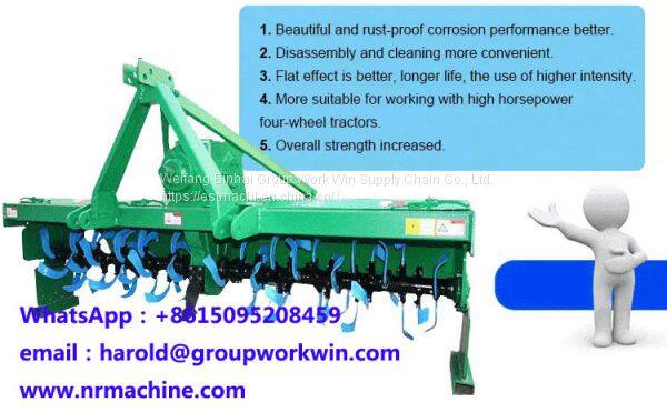 Rotary tiller with side gear transmission, it can be mounted with the tractor 12-100 hp. We can't see the wheel tracks on the soil after it worked. The quality of the rotary tiller is good and the function is very well. it is suited to dry land and paddy field. it can save time, labor and money etc. Won the majority of European and American high-end customers recognition.