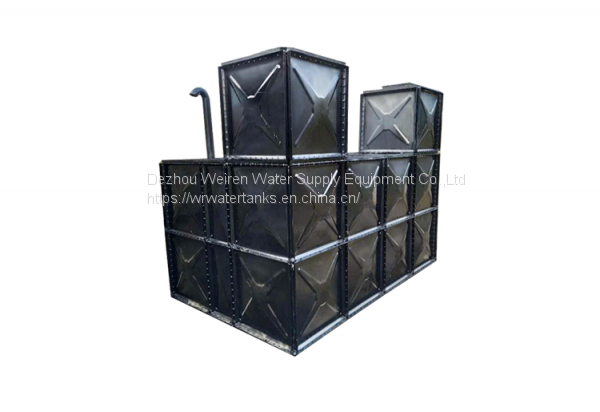 Enamel water tank is assembled by enamel steel plate. The bottom of the tank is supported by channel steel chassis, reinforced by enamel reinforcing plate, sealed by rubber strip between plates, and fastened by bolts, so as to make the tank stronger. Enamel in enamel tank is actually a kind of composite material which solidifies inorganic glass material into matrix metal by melting and bonding with metal firmly.