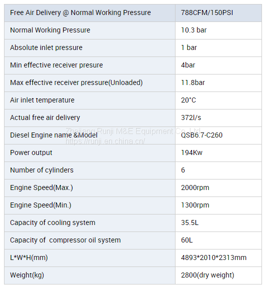 ATLAS COPCO XATS 800C Single Stage 788cfm@150psi Cummins Diesel Engine of Atlas Copco 10.3bar air compressor