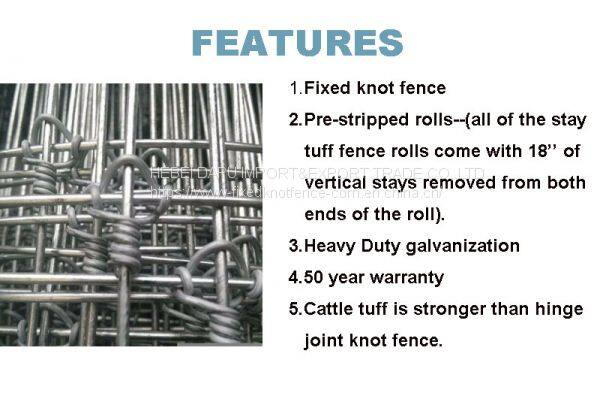 The fixed knot fence is a wire-type woven wire mesh fence with high-strength carbon steel wire. The solid structure fence adopts a solid lock structure, which is mainly used for the wild outer fence to protect deer, horse, cow, sheep, goat and other cattle. Prairie fences and farm fences. It can be installed quickly and with fewer fences. This means that fixed knots reduce costs and reduce maintenance compared to other wire constructions.