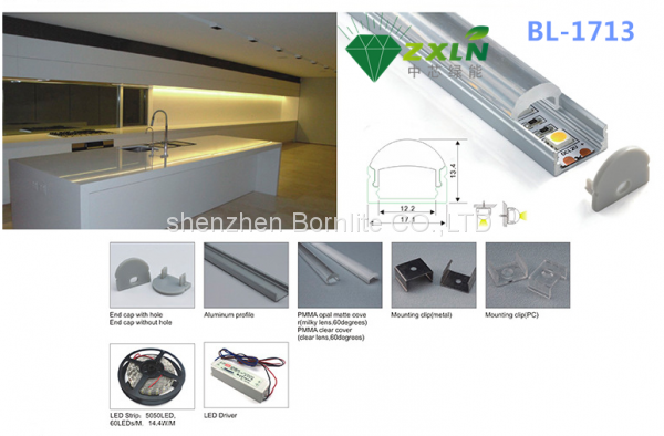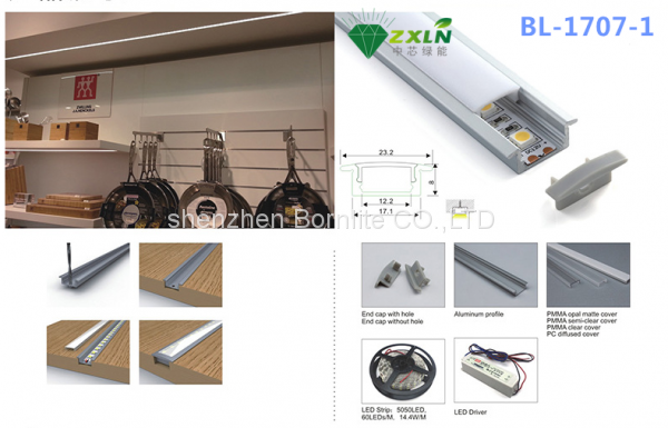7.With different size led Aluminum Profile/Channels/Extrusion for cabinet,kitchen,furniture,bathroom,decoration applications.