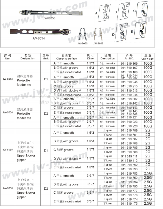 Sulzer Weaving Loom Spare Part Projectile Feeder Gripper 930.119.418 911.319.286 911.319.287