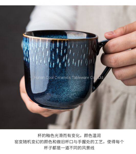 Ceramic Mug Blue Fambe Anti-scalding Creative Mark Cup Glazed Household Tea Cup Lemon Cup Small Water Mug