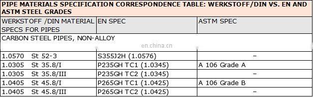 PIPE MATERIALS SPECIFICATION CORRESPONDENCE TABLE: WERKSTOFF/DIN VS. EN AND ASTM STEEL GRADES