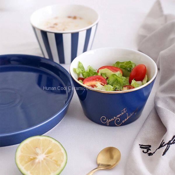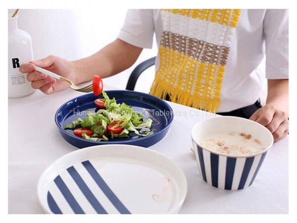 Nordic Blue White Stripes Ceramic Tableware Set Western Food Plate Bowls Breakfast Dish Salad Bowl Rice Bowl Dishes