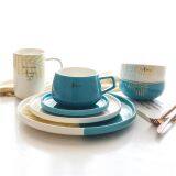 Wholesale Price Creative Blue Under-glazed Ceramic Tableware Set With Mug