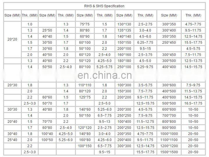 Square, rectangular, round hollow section pipe.