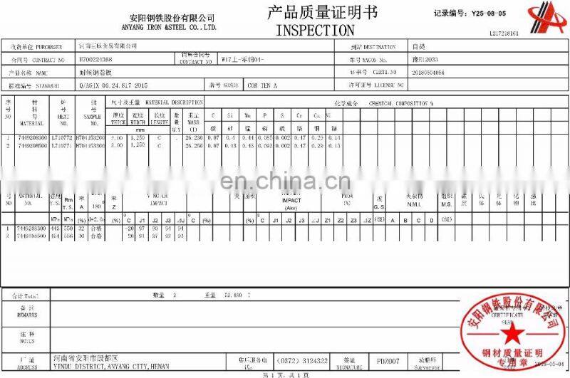 Hot Rolled A588 Gr B Weldable Corten Steel Plate PriceUS$ 580 - 680MOQ: 1 Ton