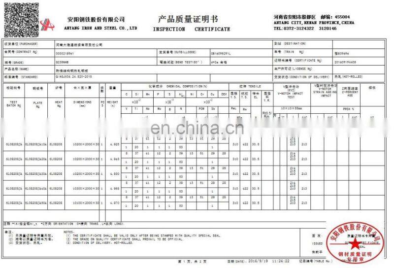 Q310NQL2 Cold Rolled Corten Steel Price m2US$ 600 - 1,000MOQ: 1 Ton