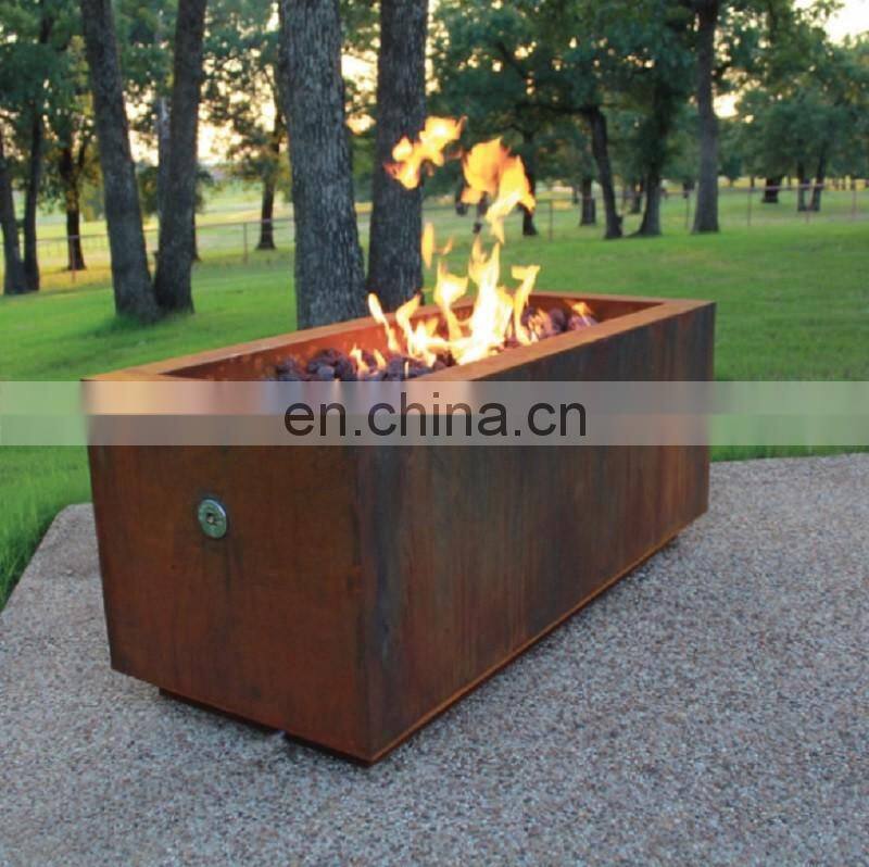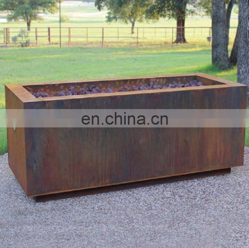 Rustic Garden Rectangular Corten Steel Fire Pit