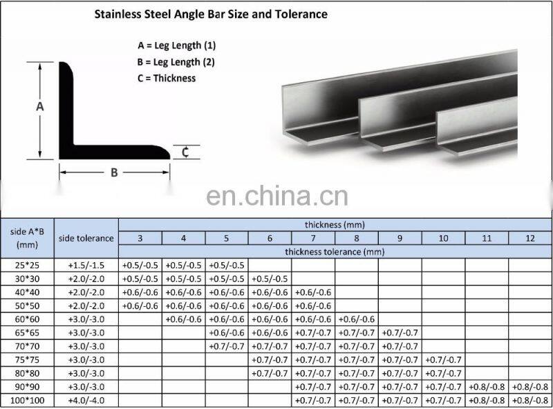 Price of 316L Stainless Steel L Shaped Angle Bar Sizes