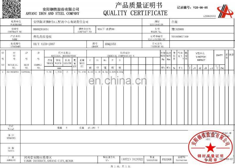 Home > Products > Steel Plate > Steel Plate Weight S275jr Chequered Plate 6mm