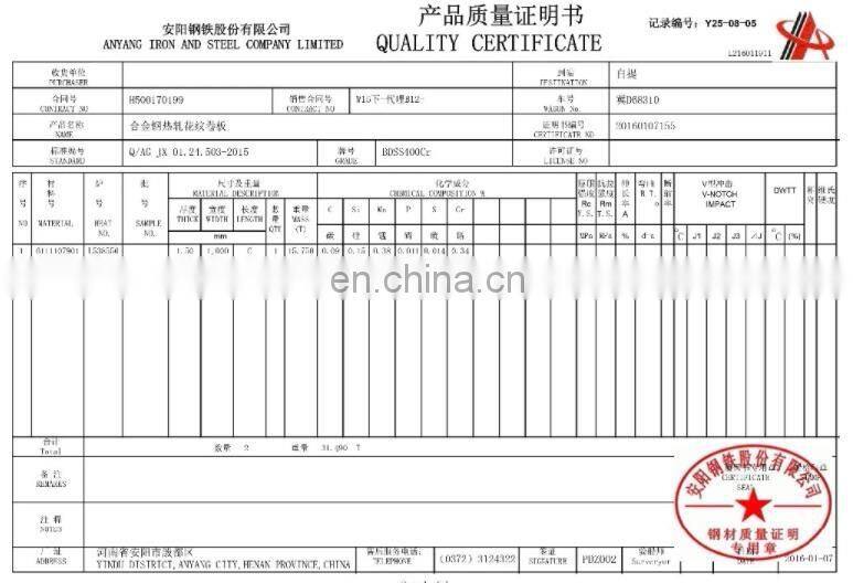 f) Strict quality control for hot rolled Checkered sheet /plate