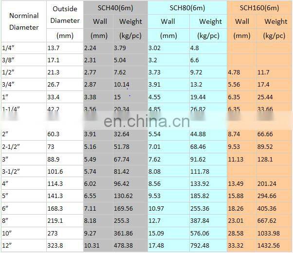 Thickness | SCH5S, SCH10S, SCH20S,SCH20, SCH30,STD, SCH40,SCH60, SCH80, SCH100, SCH140, SCH160,XS, XXS |