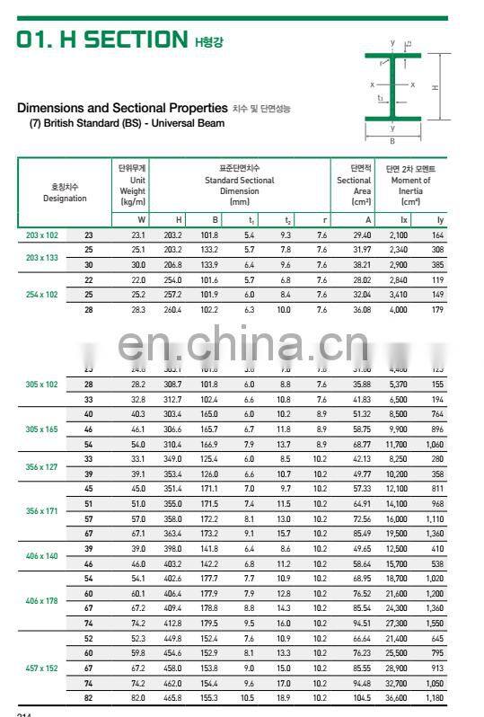 - Hot-rolled British Standard H-beam UB457*152*60/12m S355JR/J0 Spot Goods