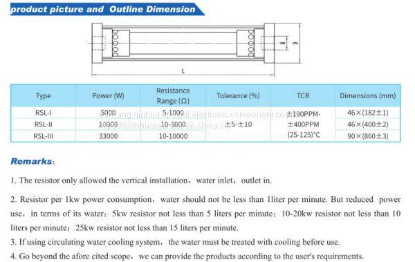 Hv resistor 5000w water cooled resistor metal oxide thin film