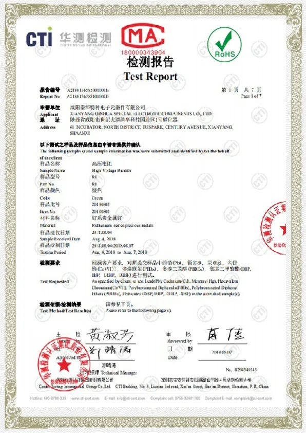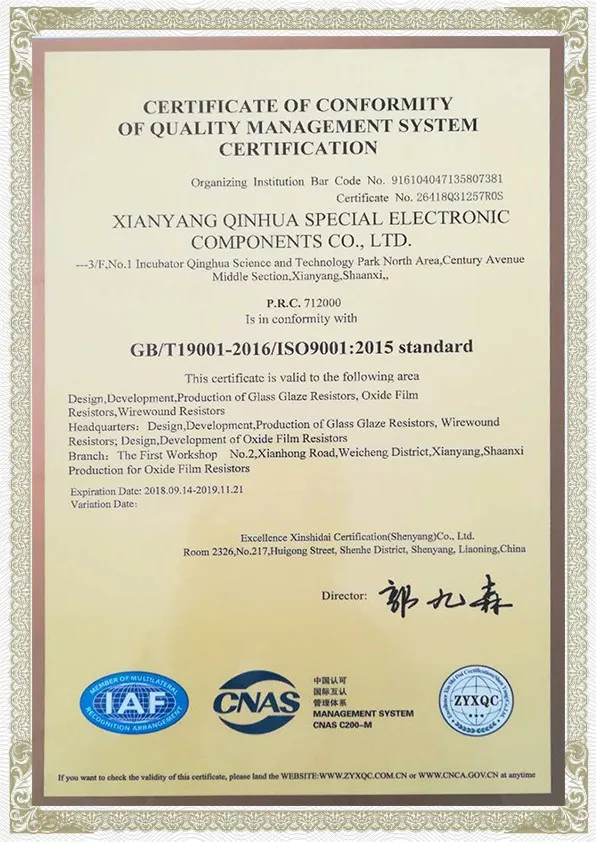 Xianyang Qinhua Special Electronic Components Co., Ltd established in June 23, 2000, which located in Xianyang, Shaanxi Province.we are one of the top 10 manufacturers for all kinds of Resistor in China.
