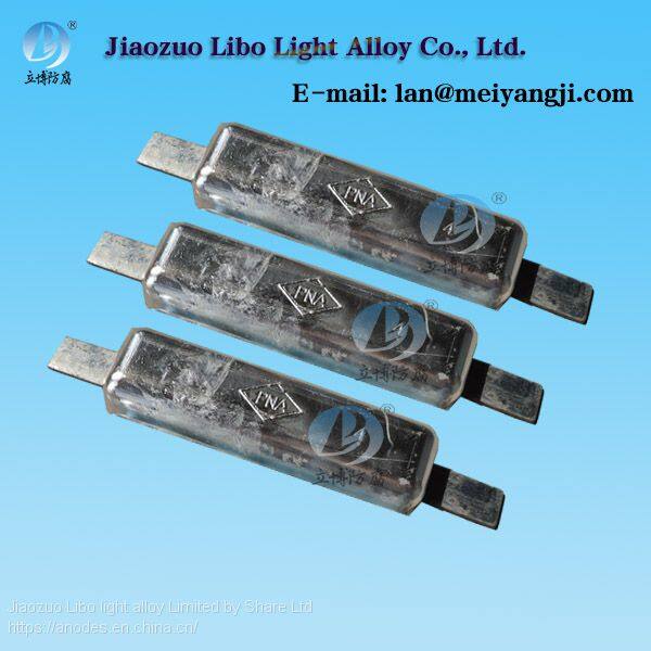 · Zinc alloy sacrificial anode is suitable for cathodic protection of metal corrosion in ships, ballast tanks, mechanical equipment, marine engineering and harbour facilities, drilling platforms, harbour terminals, condensers of seawater media, water pumps and pipelines and cables in low resistivity soil.