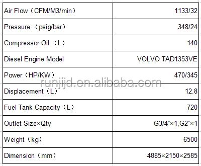 High Pressure Diesel Air Compressors of TWT1133D-24T Air Compressor With VOLVO Diesel Engine 32m3/min 24 Bar for Sale