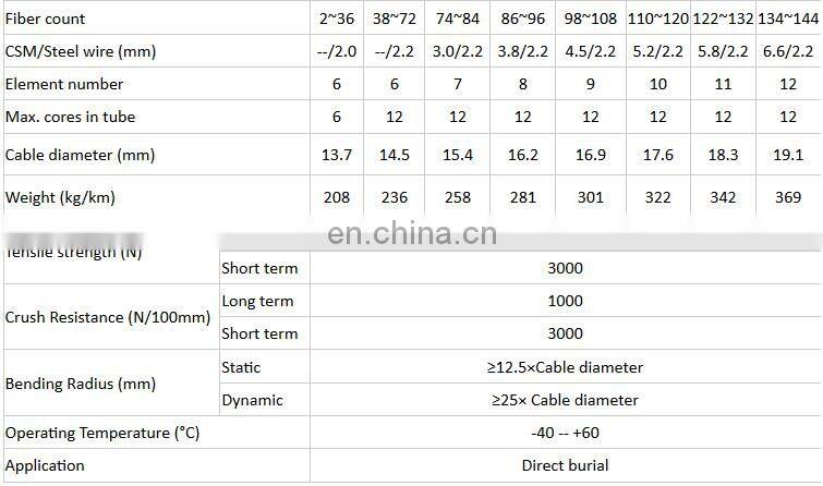 6 12 24 48 72 96 Core G652D Single Mode Armored Outdoor Aerial Duct Fiber Optic Cable GYXTW GYTA GYTS GYFTY Cable