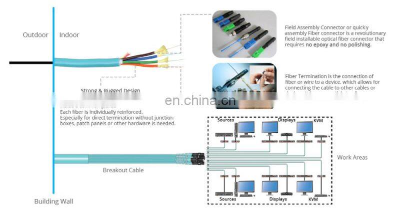 OS2 OM3 OM4 Indoor Fiber Optic Breakout Distribution Cable With LSZH/OFNR/riser Jacket